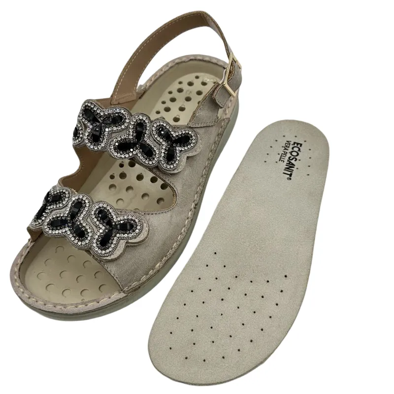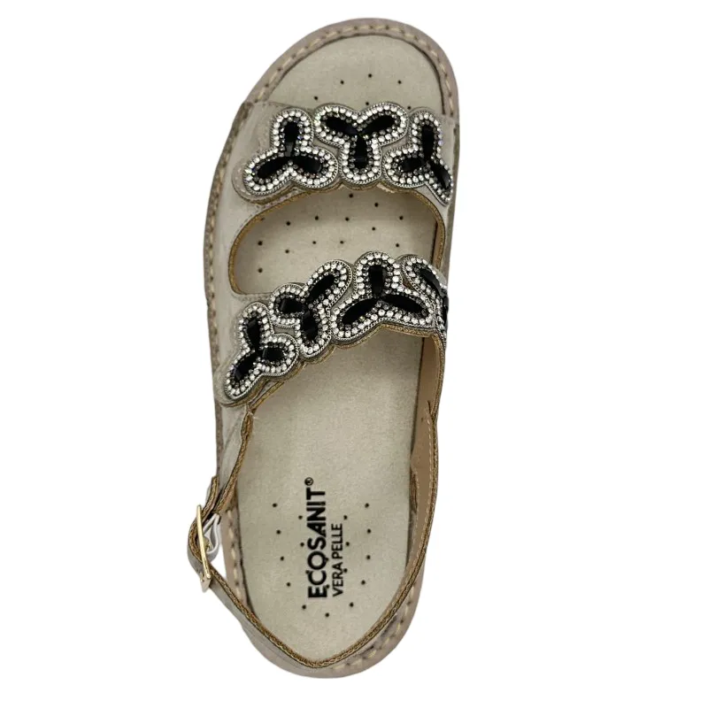 Chi l’ha detto che una scarpa ortopedica non possa essere anche raffinata? Il sandalo ortopedico donna Ecosanit 113P021 unisce il comfort di un dispositivo medico alla bellezza di un design femminile, decorato con delicate pietre su una tomaia in nabuk. Ideale per la bella stagione, ti accompagna ogni giorno con stile, sicurezza e sollievo.