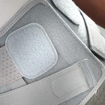 Indossa il corsetto come uno zaino e chiudi i pannelli anteriori con il velcro (le maniglie aiutano).